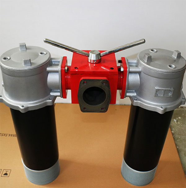 本過濾器適用于需要連續(xù)工作,不允許停機(jī)清洗濾芯情況下的液壓系統(tǒng)回油管路精過濾,用以濾除系統(tǒng)中的機(jī)械和化學(xué)雜質(zhì),使流回油箱的油液保持清潔。過濾器由一只二位六通換向閥和二只回油管路過濾器組成。其主要性能特點有:  1.當(dāng)工作的一只過濾器濾芯堵塞,其進(jìn)出口壓差達(dá)到0.35MPa時,發(fā)訊器便會發(fā)出訊號,這時須及時打開換向閥上的平衡閥,并轉(zhuǎn)動換向閥,關(guān)閉濾芯已堵塞的過濾器的油路,并關(guān)閉平衡閥,使備用過濾器進(jìn)入工作狀態(tài),保持系統(tǒng)的連接運(yùn)行。然后更換已堵塞的濾芯。  2.當(dāng)濾芯堵塞,發(fā)訊器報警后無人處理故障,進(jìn)出油口壓差升至O.40MPa時,安裝在濾芯上部的旁通閥便自行開啟,另開油路,避免過濾囂損壞,確保系統(tǒng)照常運(yùn)行。  3.濾芯采用紙質(zhì),化纖,網(wǎng)式和線隙式濾材,適應(yīng)系統(tǒng)對過濾器的不同需求。